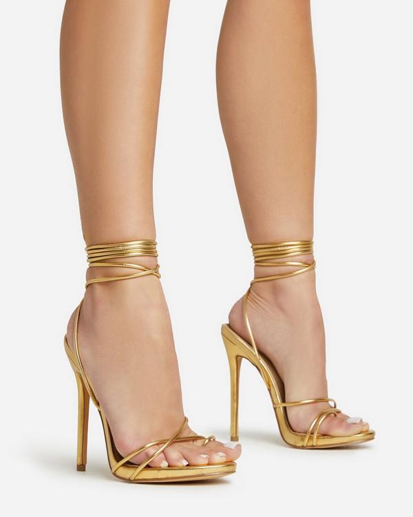 Product Name: Gold strappy platform heels new arrivals